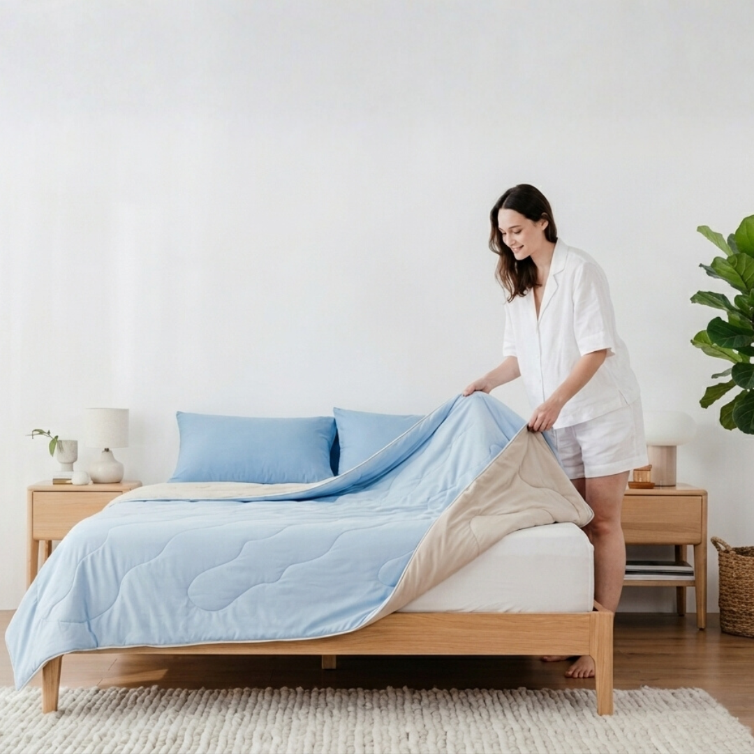 Our UltraCool™ Blanket is your new bedtime bestie for hot nights, humid summers, and anyone who’s over waking up sticky.